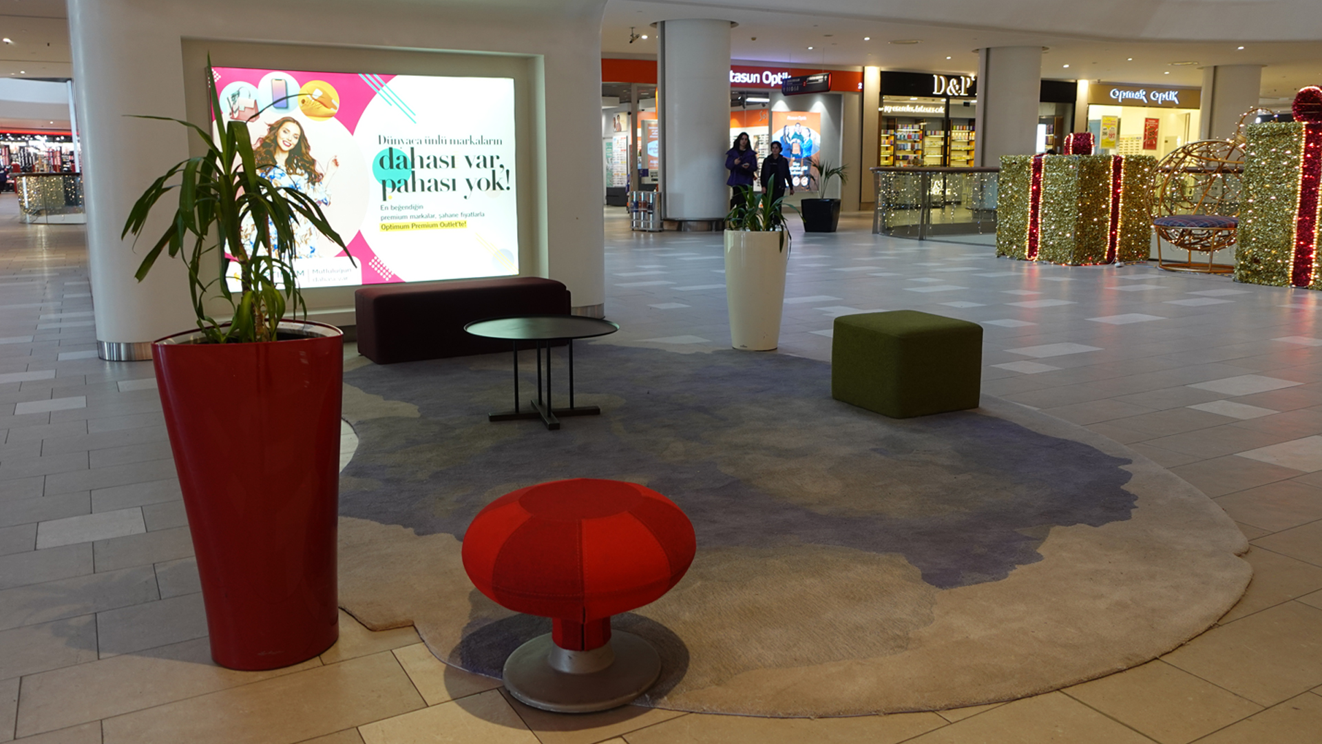 Optimum Alışveriş Merkezleri’nin modern atmosferine, yenilikçi tasarımlarımızla enerji kattık! Özel üretim halılarımızla mekanın estetik ve fonksiyonelliğini bir araya getirdik.
